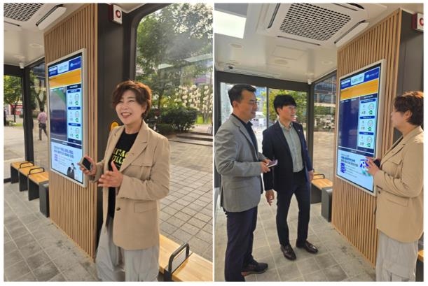 [더코리아저널 전영순 기자] 경기도의회 정경자 의원(보건복지위원회, 국민의힘, 비례)과 남양주시의회 원주영 의원(다산1·2동, 양정동)은 지난 17일(금) 남양주시 기후에너지과와 함께 남양주시 다산1·2동 일원에 설치가 완료된 ‘스마트정류장(스마트 쉘터)’ 현장을 함께 방문했다.이번 스마트정류장 설치는 폭염과 한파, 미세