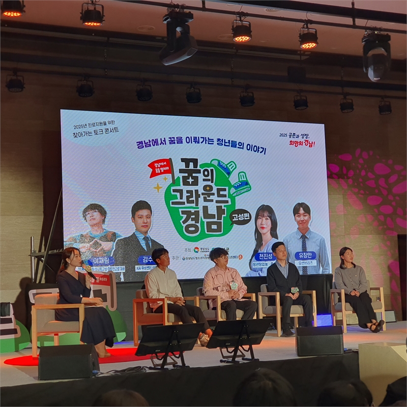 [더코리아저널 박현상 기자] 경남도는 22일 고성 유스호스텔 컨벤션홀에서 고성고, 고성중앙고, 철성고 등 고성 지역 고등학생 250명이 참석한 가운데 ‘꿈의 그라운드 경남, 찾아가는 토크 콘서트’를 개최했다.찾아가는 토크 콘서트는 경남 청년들의 다양한 성공 사례를 통해 지역 청소년들이 경남에서 미래를 설계하고 꿈을 키울