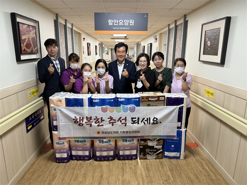 [더코리아저널 박현상 기자] 경상남도의회 기획행정위원회(위원장 백태현)는 10월 1일, 추석 명절을 맞아 함안요양원과 독립유공자를 방문하여 따듯한 마음을 전달하였다.