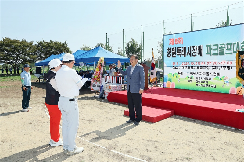 개회식에서 장금용 창원특례시장 권한대행은 “2022년 이후 3년 만에 열리는 시장배 대회를 축하하며 열정을 다해 참여해 주신 선수 여러분과 파크골프협회에 감사드린다”며, “파크골프는 부담 없는 운동 효과와 대중성으로 저변이 확대되고 있으며, 창원시도 늘어나는 수요에 맞춰 수혜자 중심의 편의시설 개선에 최선을 다하겠다”고 말했다.