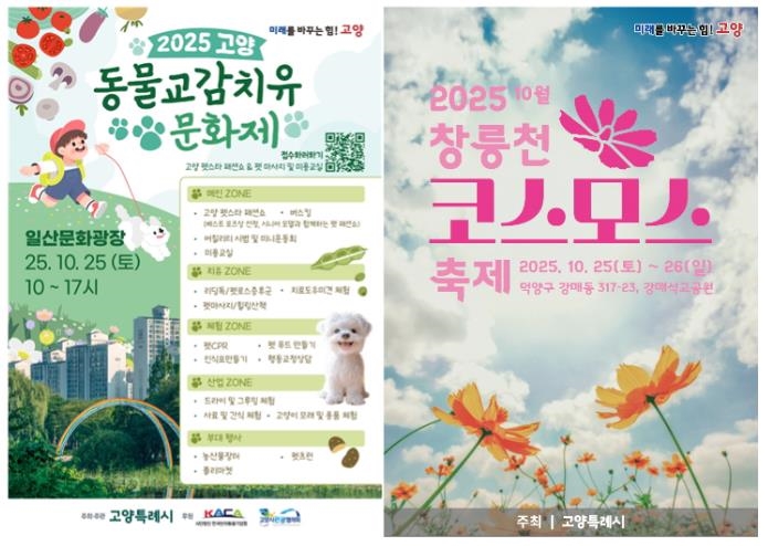 좌측은 동물교감치유 문화제 포스터, 우측은 창릉천 코스모스 축제 포스터 [사진=고양시]