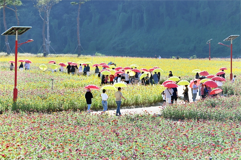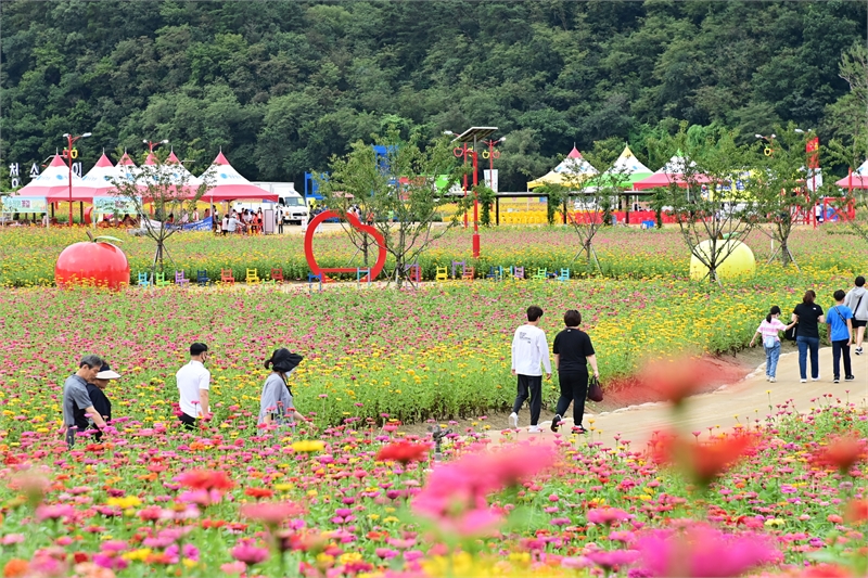 [더코리아저널 박태주 기자] 청송군 파천면 신기리 일대에 조성된 전국 최대 규모의 백일홍 화원 ‘산소카페 청송정원’이 지역 도시브랜드 ‘산소카페 청송군’의 이미지를 대표하는 힐링 공간으로 자리매김하며 군민과 관광객들로부터 큰 호응을 얻고 있다.