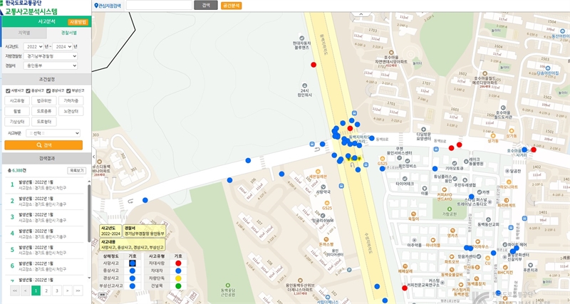 동백지하차도사거리 한국도로교통공단 교통사고분석시스템 [사진=용인시의회]