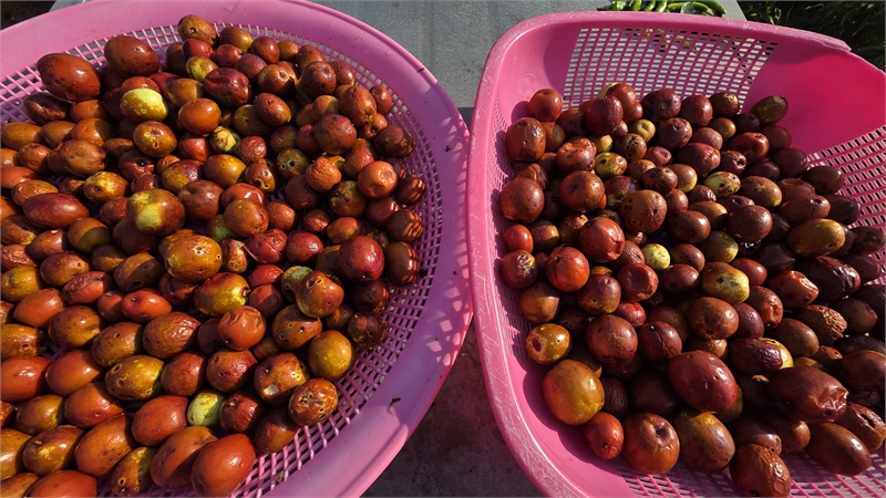 그러나 올해의 대추는 예전처럼 탐스럽지 않았다. 비와 바람을 온몸으로 견디며 스스로 익어낸 열매들은 반쯤은 벌레가 먹고, 반쯤은 낙과로 떨어져 있었다.