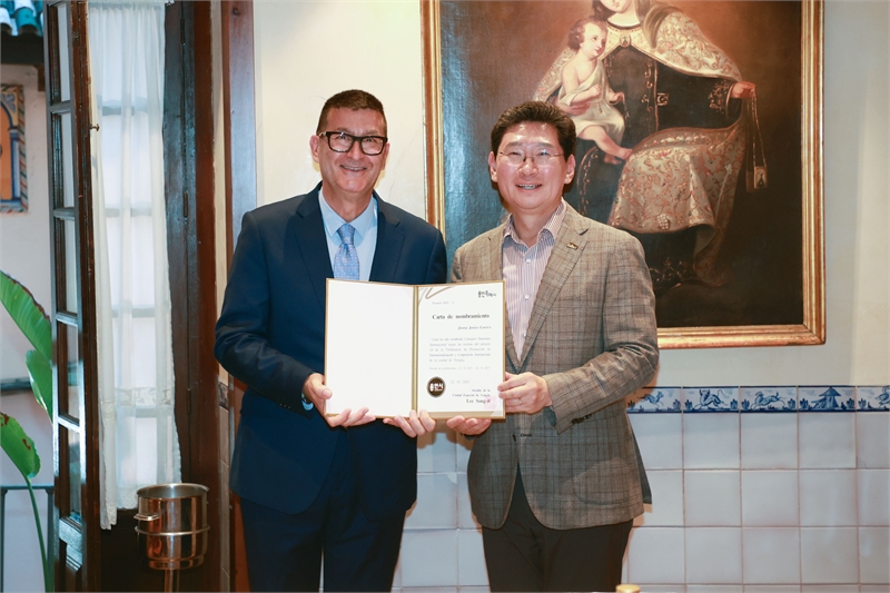 이 시장은 협약식 후 산스 시장과 행사장 부스를 둘러본 뒤 장소를 옮겨 이태분 씨와 코르테스 씨 등 2명에게 용인특례시 국제명예자문관 위촉장을 전달했다.