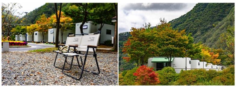 청량산 수원캠핑장은 데크야영장(9면)·쇄석야영장(3면) 등 오토캠핑존 12면, 카라반(6면)·글램핑(7면)·이지야영장(5면) 등 숙박시설 18면을 갖췄다. 카라반에는 장안마루, 화서마루, 팔달마루, 창룡마루, 화홍마루, 행궁마루라는 이름을 붙였다.
