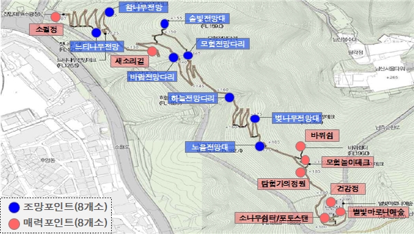 남산 하늘숲길-조망·매력포인트 위치 [사진=서울시]