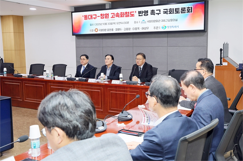 [더코리아저널 박현상 기자]창원특례시는 30일 국회의원회관에서 ‘동대구–창원–가덕도신공항 고속화철도’의 제5차 국가철도망 구축계획 반영을 위해 추진 중인 범시민 서명운동(10.17.~11.16.)과 연계해, 사업 추진에 대한 공감대 확산을 위해 ‘동대구–창원 고속화철도 반영 촉구 국회토론회’를 개최했다.