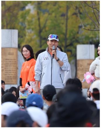 안정은씨는 “오늘 기록보다 중요한 것이 아이들과 함께 쌓는 추억이라며 오늘걷는 길이 세상에서 가장 아름다운 트랙이 되길 바란다”고 말했다. 김윤지씨는 “오늘 수익금 일부가 다문화가정에 지원되는데, 뜻깊은 행사에 동참하게 되어서 기쁘다”고 밝혔다.