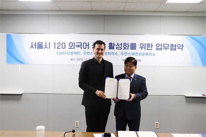 이이재 서울시 120다산콜재단 이사장은 “서울시 대표 민원상담 창구인 120다산콜과 스페인·스웨덴 상공회의소가 협력함으로써, 스페인과 스웨덴 국적 경제인들이 보다 편리하게 서울에서 생활할 수 있도록 적극 지원할 것”이라며 “앞으로도 외국인 시민을 위한 다국어 상담과 글로벌 교류 확대에 힘쓰겠다”고 밝혔다.