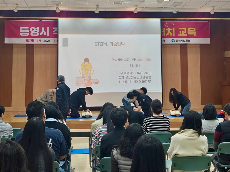 이번 교육은 대민행정 서비스 최일선에서 발생할 수 있는 응급상황에 대비, 시민 안전과 생명보호를 위해 직원들의 응급처치 역량을 강화하고 현장 대응능력을 높여 보다 안전한 통영을 만들기 위해 마련됐다.