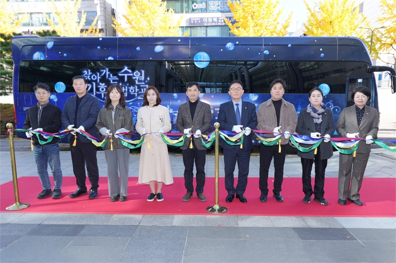 버스 내부는 ▲기후변화 체험 ▲탄소중립 퀴즈 ▲에너지 절약 미션 등 참여형 프로그램으로 구성됐으며, 학교와 지역행사를 직접 찾아가 이동형 환경교실로 운영한다. 수원시는 시민과 학생이 기후인식을 높이고 생활 속 탄소중립을 실천하도록 적극 지원할 계획이다.