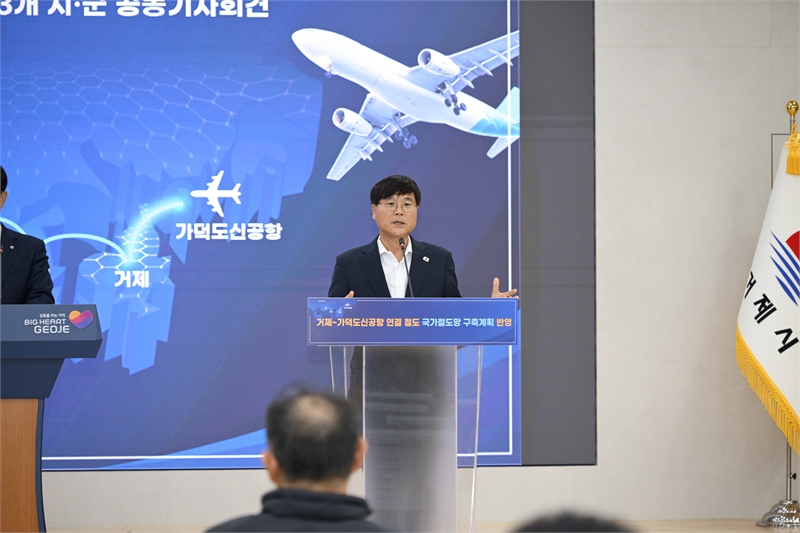 [더코리아저널 박현상 기자] 거제시(시장 변광용)는 17일 오후 2시 거제시청 대회의실에서 통영시․고성군과 함께 ‘거제~가덕도신공항 연결철도’의 제5차 국가철도망 구축계획 반영을 촉구하는 공동 기자회견을 개최했다.