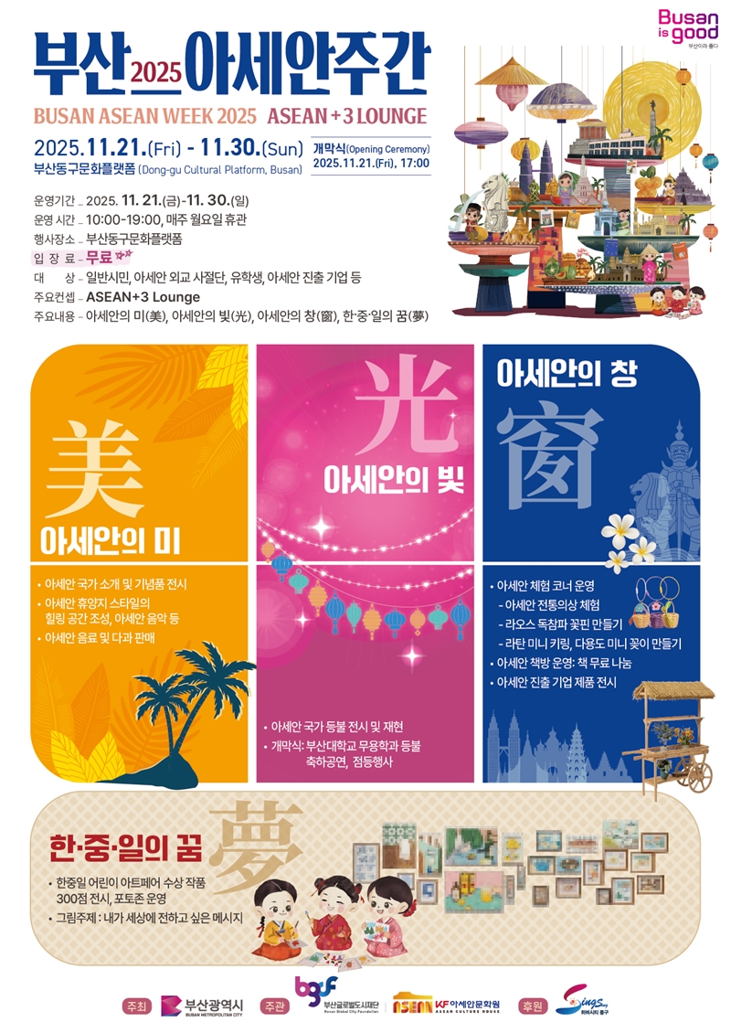 [더코리아저널 김종섭 기자] 부산시(시장 박형준)는 21일부터 11월 30일까지 열흘간 동구 문화플랫폼(도시철도 부산진역 8번 출구)에서 「2025 부산-아세안 주간」을 개최한다.