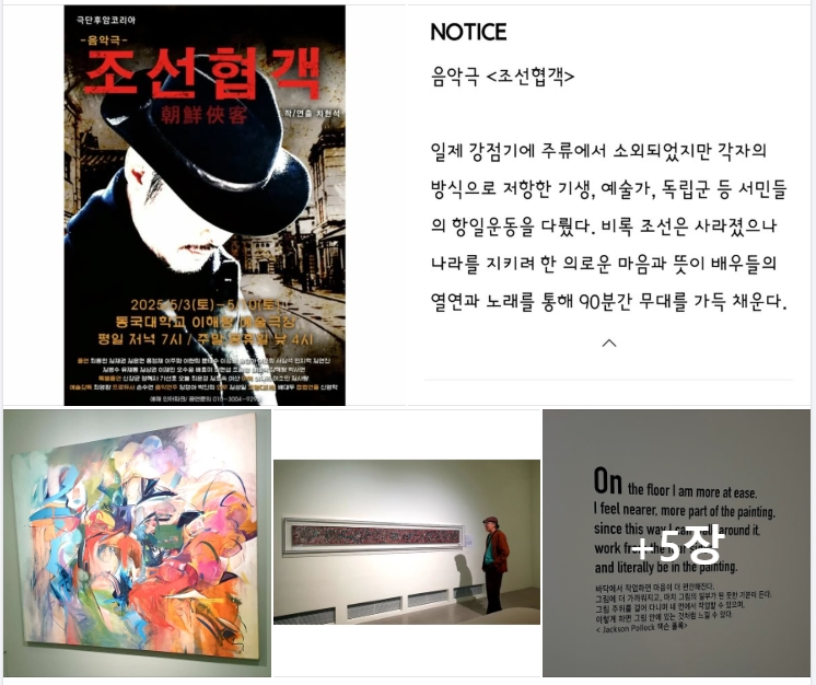 새로움을 마다않는 예술가를 만나러 갔다ᆢ노원뮤지엄의 뉴욕 거장전ᆢ바닥에 자신을 잠겨 물감을 흩뿌리는 폴락, 빨간색 속에도 50개가 넘는 다른 빨간색이 있지않냐 질문한 로스코까지ᆢ입장료의 몇배를 안고 나오는 이 풍성함ᆢ