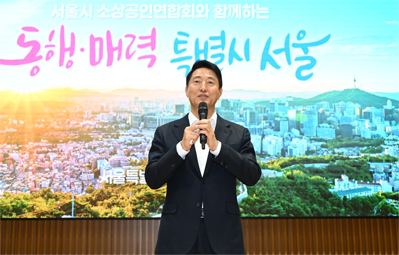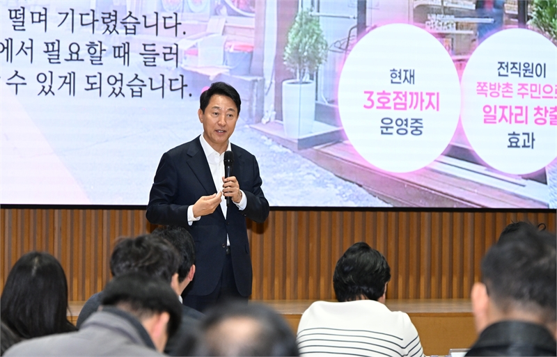 “서울에서 ‘장사할 맛 나도록’ 각별히 신경 쓰고 있는 정책과 사업들을 소개해 드리겠다”며 강연을 시작한 오 시장은 ▴자금부터 경영, 폐업, 그리고 새출발까지 소상공인을 전력 지원하는 ‘힘보탬 프로젝트’를 비롯해 ▴자영업자 전용 ‘안심통장’ ▴자력 성장을 지원하는 ‘더성장펀드’ ▴서울시 공공배달앱 ‘서울배달+땡겨요’ 등을 설명했다.