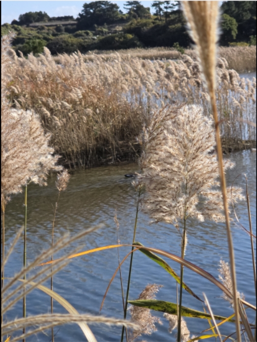 물가엔 갈대들이 보드라운 갈색머리를 날리고 그들의 정강이쪽에는 오리들이 떼를 지어 대여섯마리가 오붓하게 먹이를 먹고 있었다. 갈대숲 너머로 저들을 바라보는 걸 재빨리 알아차리고 휘리릭 모두 반대편 갈대숲을 건너가버렸다.