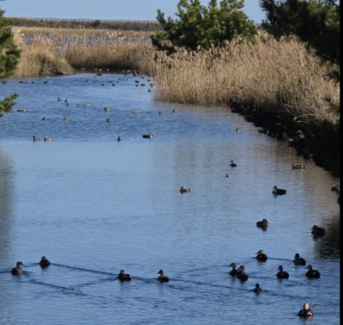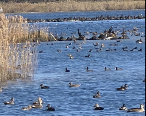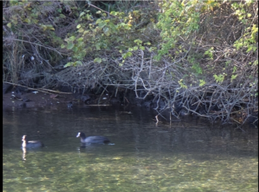 철새도래지에는 물의 깊이가 1미터정도로 낮고 갈대가 우거진 돌 섞인 진흙섬이 있다. 그 그늘이 오리들이 놀기에 좋은 모양이다.