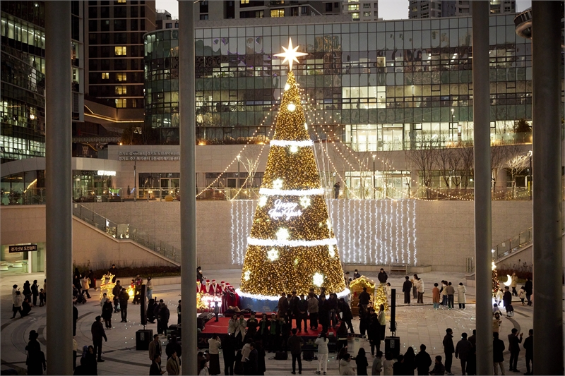 [더코리아저널 전영순 기자] 경기도청과 경기도의회, 경기도서관 등이 위치한 대규모 공공기관 복합단지인 경기융합타운 광장에 연말연시를 상징하는 대형 트리가 설치돼 불을 밝혔다.