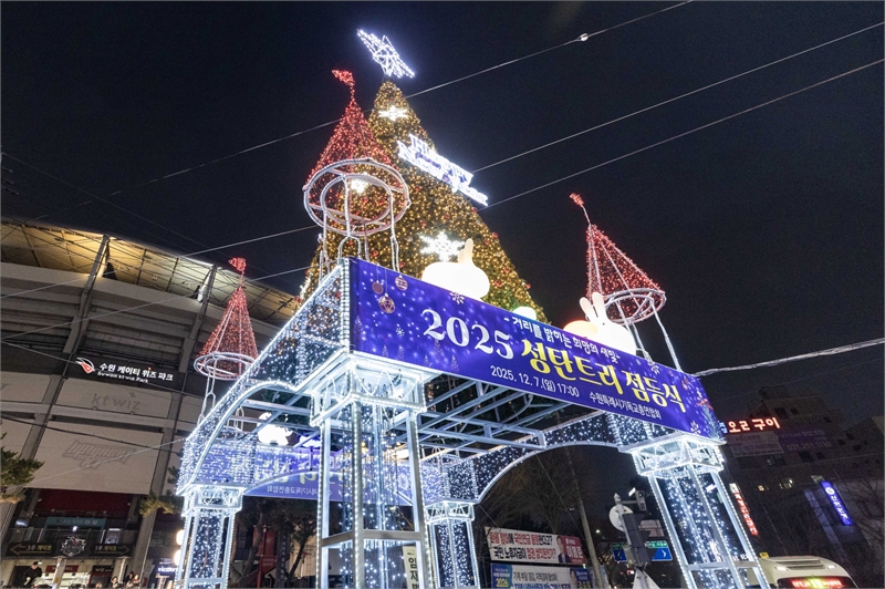 [더코리아저널 전영순 기자] 수원 장안구청 사거리 교통섬에 세워진 ‘2025 새빛수원 성탄트리’ 점등식이 7일 열렸다.