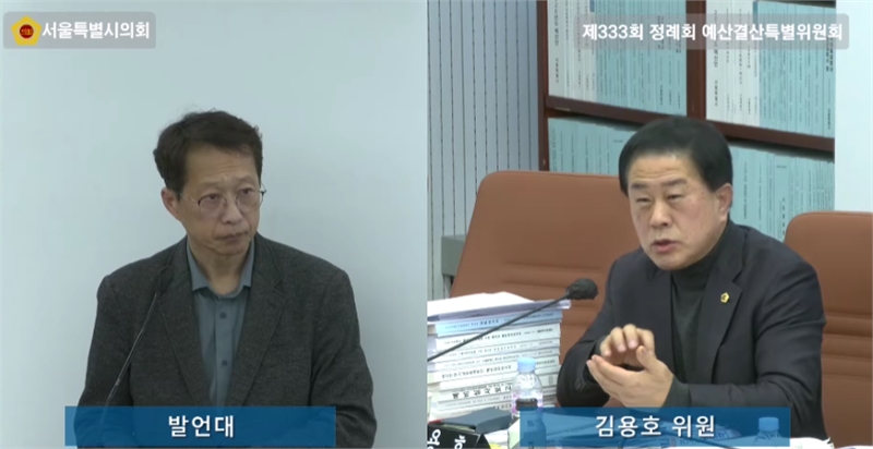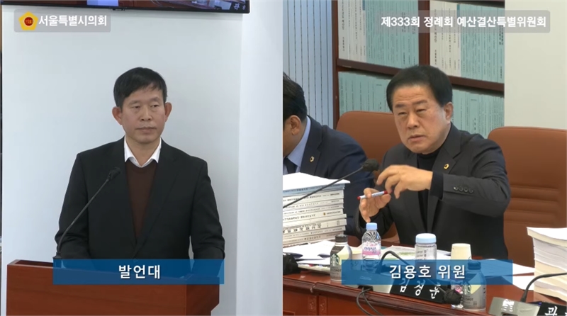 김용호 시의원이 권민 서울시 기후환경본부장에게 질의하고 있다. [사진=서울시의회]