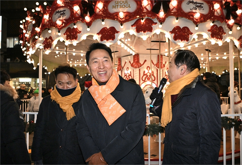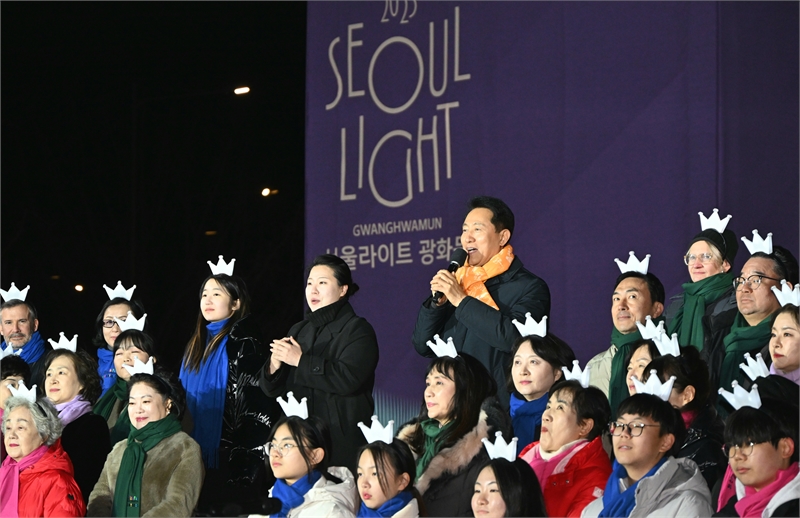 오 시장은 시민 대표들과 함께 광화문 미디어파사드와 옥외전광판에 점등하며 겨울밤 서울 도심을 화려하게 빛으로 수놓았다. 이어서 광화문광장의 ‘광화문 마켓’과 청계천의 ‘서울빛초롱축제’를 차례로 둘러봤다.