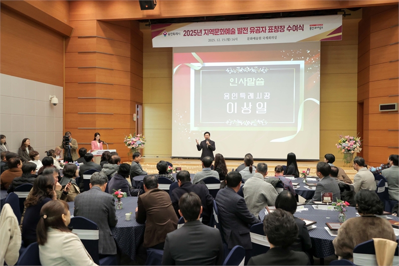 [더코리아저널 전영순 기자] 용인특례시(시장 이상일)는 15일 문화예술원 국제회의실에서 ‘2025년 지역문화예술 발전 유공자 표창장 수여식’을 열었다.