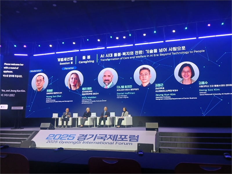 ‘AI 시대 돌봄ㆍ복지의 전환: 기술을 넘어 사람으로(Tranformation of Care and Welfare in AI Era: Beyond Technology to People)’라는 주제로 조지타운대학교 예술과학대학원 매리매든 네스퍼 겸임교수, 다니엘 호프만 미국 버지니아주 헌든시 행정책임자, 김정근 강남대학교 시니어비즈니스학과 부교수, 김홍수 서울대학교 건강ㆍ돌봄AI센터 센터장이 연사로 나와 인간 중심 복지사회를 위한 인공지능 기술과 쟁점, 인공지능 기술 개발 및 구현 시 윤리적 고려사항과 책임성에 대해 열띤 토론을 펼쳤다.