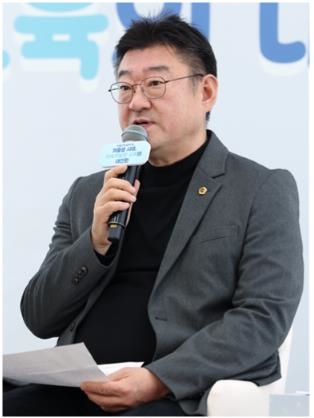박상혁 위원장이 지난 10일(수) 서울시청 후생동 4층 강당에서 열린 ‘서울교육 담론의 장 : 저출생 시대 지속가능한 교육의 대전환’에서 발언하고 있다. [사진=서울시의회]