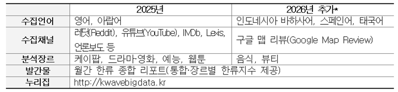 [표 1] AI 기반 한류 빅데이터 대시보드 개요