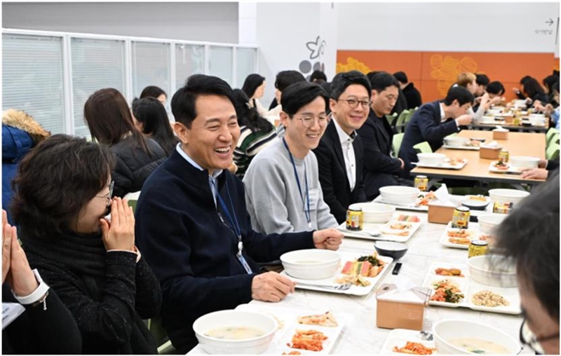 이어 오 시장은 구내식당에서 직원들과 ‘현미떡국’을 먹으며 새해 포부와 계획 등 다양한 이야기를 나눴다. 이날 점심식사는 서울시민 걷기‧건강생활실천율 1위 달성(질병청, 2025 지역사회건강조사)을 기념해 ‘더 건강한 서울9988’ 사업 담당자들이 함께했다.