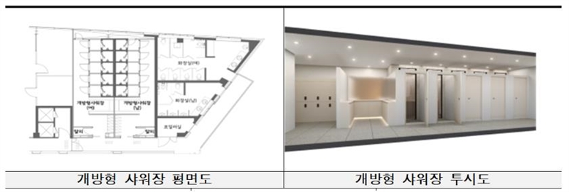 ‘개방형 샤워장’은 남‧녀 각 5개 개인별 샤워부스, 물품보관함 총 13개, 탈의실 2실 등을 갖추고 있다.