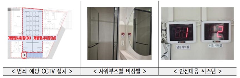 시는 특히 샤워장을 안심하고 이용할 수 있도록 네이버 앱으로 출입인증서를 발급, QR 출입 인증과 보안을 위한 출입 기록이 관리되는 ▴스마트폰 QR 출입시스템을 활용키로 하고, ▴범죄예방 CCTV ▴비상 안심벨 ▴불법촬영탐지기 등도 설치했다.