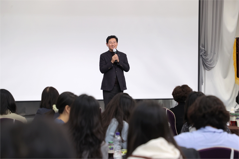 이상일 시장이 5일 시청 컨벤션홀에서 열린 제6기 용인청년정책네트워크 발대식에 참석해 인사말을 하고 있다. [사진=용인시]