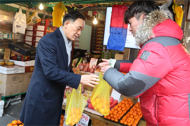 240202 개포시장에서 장을 보는 조성명 구청장 [사진=강남구]