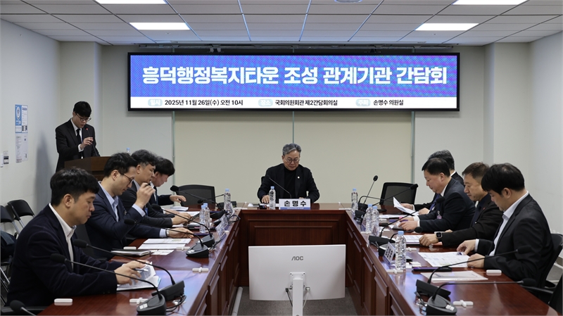 [더코리아저널 전영순 기자] 국회 손명수 의원(국토교통위원회, 더불어민주당, 경기 용인을)은 26일, 용인‘흥덕 행정복지타운’조성을 위한 관계기관 간담회를 개최했다.이날 간담회는 용인시 흥덕지구(기흥구 영덕1동)에 기흥세무서 복합청사(기흥세무서, 경기동부보훈지청, 청년창업시설 등), 국민건강보험공단 인천경기지역본부 등