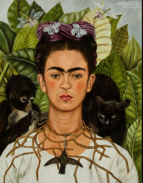 Self-Portrait with Thorn Necklace and Hummingbird, Oil on Canvas, 1940, Frida Kahlo