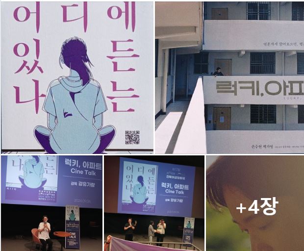 그때까지 내가 볼 영화가 어떤 종류의 영화인지, 제목이 무엇인지 전혀 알지 못했다. 상연 전, 빠르게 리플렛을 훑어보았다. 영화는 ‘희허락락(喜Her樂樂)’과 ‘어디에 있든 나는’이라는 슬로건 아래 9월 5~7일까지 열리는 ‘제17회 전북여성영화제’ 두 번째 날, 두 번째로 상영되는 <럭키, 아파트>임을 비로소 알게 되었다.