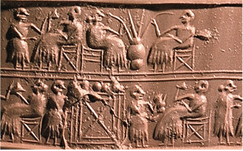 메소포타미아 유역에서 가장 오래된 맥주의 증거는 B.C. 4000년 무렵의 수메르 석판으로, 항아리를 가운데 두고 갈대 빨대로 맥주를 마시는 사람들의 모습을 묘사한 것에서 당시의 시대 상황을 알 수 있다. 출토된 그 시대의 항아리에서도 맥주 성분을 검출하였다.