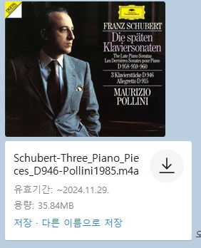 두 번째 주제는 덜 격렬하고 다소 차분하지만 여전히 밝고 활기차게 이어집니다. 세 곡 중에서도 감정적 대조와 리듬적 변화를 극대화하며, 슈베르트의 깊은 감성과 창의력을 잘 보여주는 작품입니다. 오늘은 마우리치오 폴리니의 1985년 연주음원입니다. 행복한 주말 보내세요.
