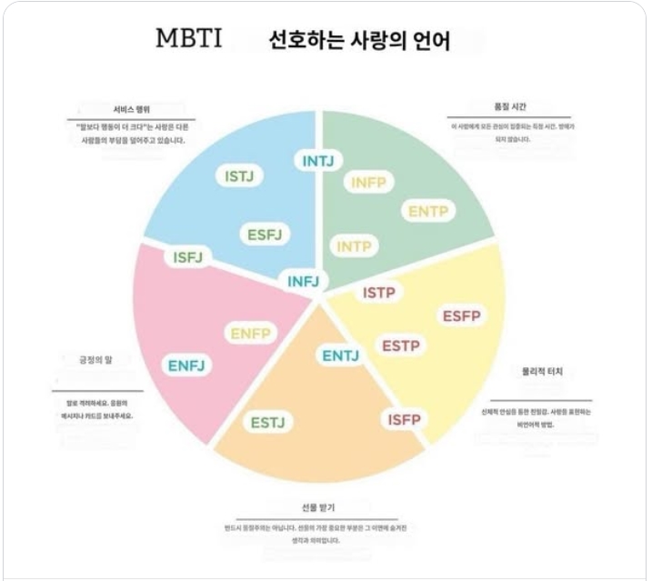 " MBTI 모든 유형은 어떤 사랑의 언어든 선호할 수 있으며, 사랑의 표현은 사람마다 다르다"