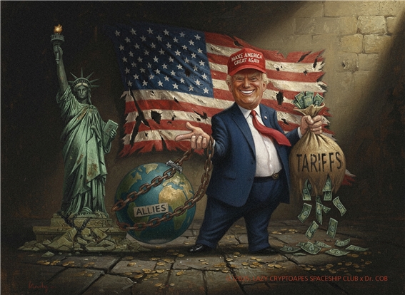 관세로 동맹을 흔드는 트럼프, Dr. COB, 2025 [그림=이홍석]
