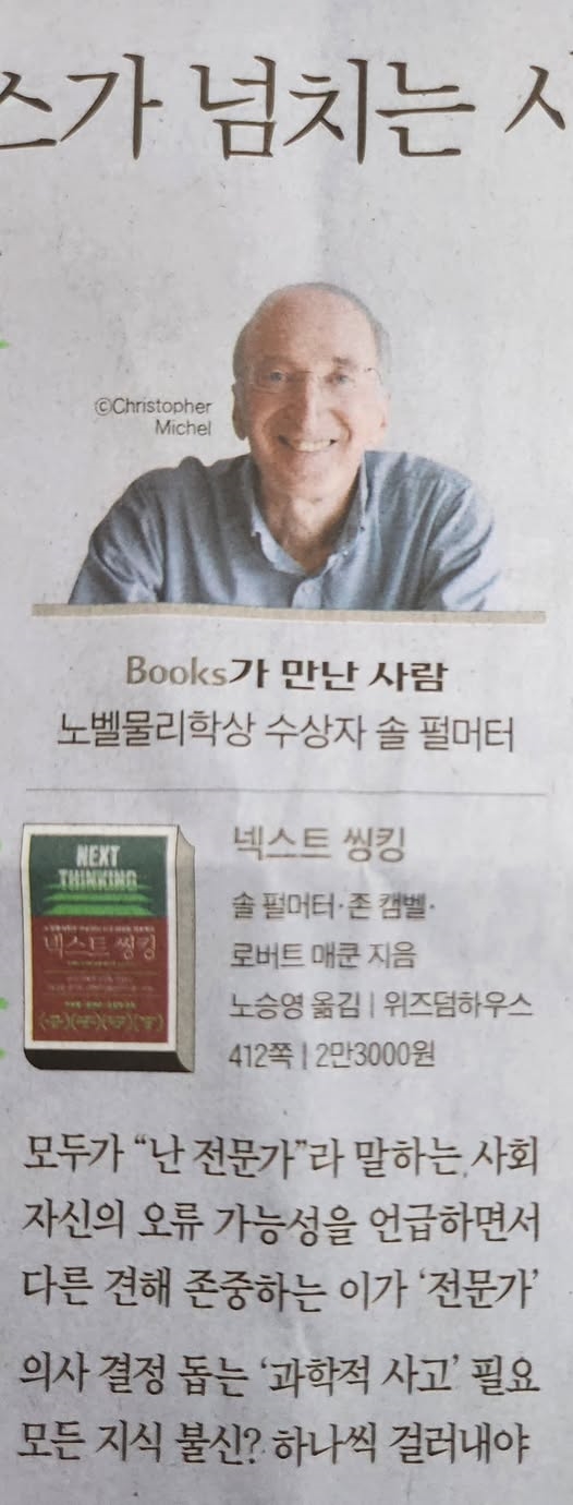 자신의 오류 가능성을 언급하면서 다른 견해 존중하는 사람이 '전문가'라고 아래 사진의 책 "넥스트 싱킹"의 저자 솔 펄머터는 강조했다.