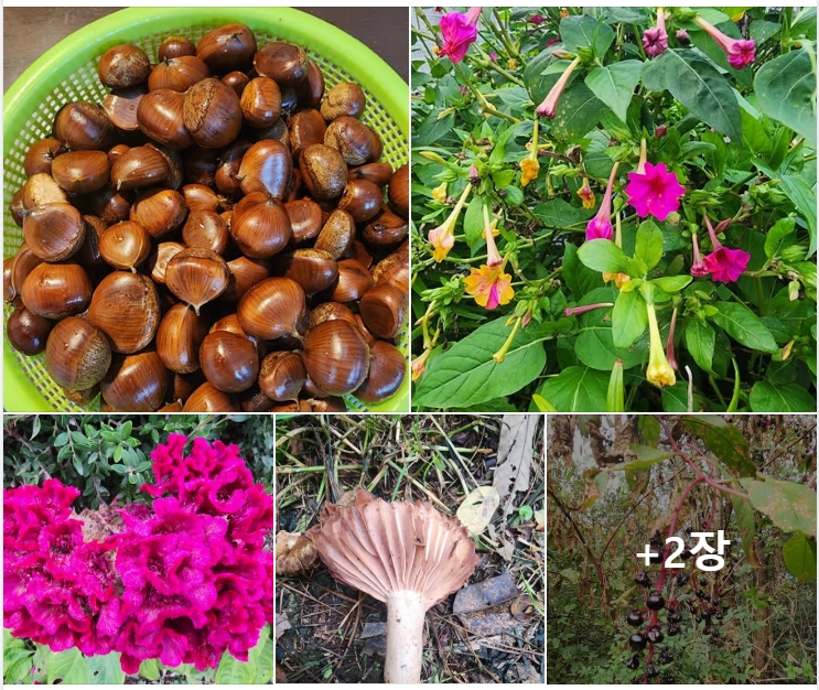 친구들의 건강이야기도. 헤어지고 아내와 산길로 접어들어 밤들을 주어왔습니다. 밤줍기는 온몸, 온마음 운동에 최고입니다.